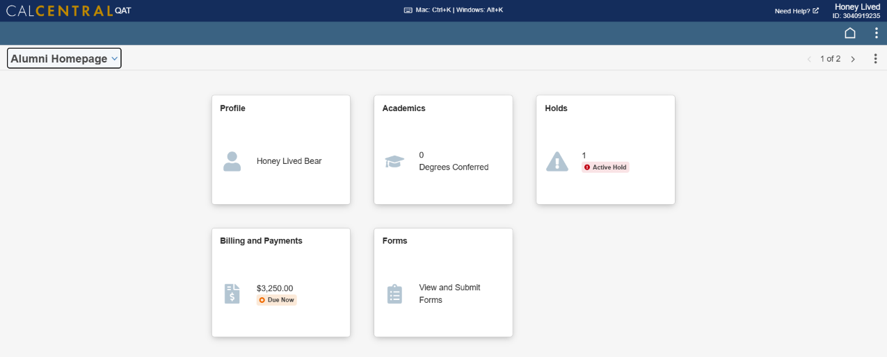 Access to the Alumni Homepage is granted automatically 14 days after the semester ends, transitioning your CalCentral view from an active student experience to alumni access. No further action is needed on your part.
